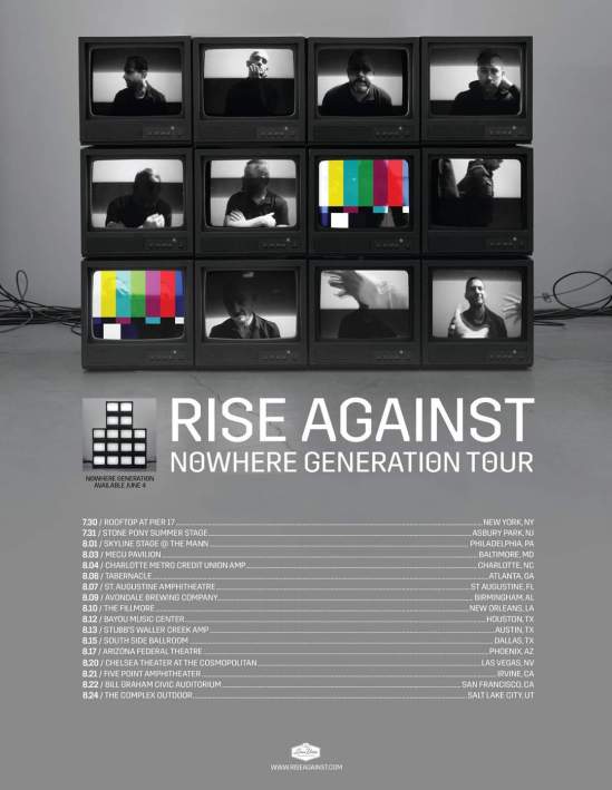Rise Against have announced a summer U.S. tour. The band will be touring in support of their new album “Nowhere Generation,” which will be released on June 4.