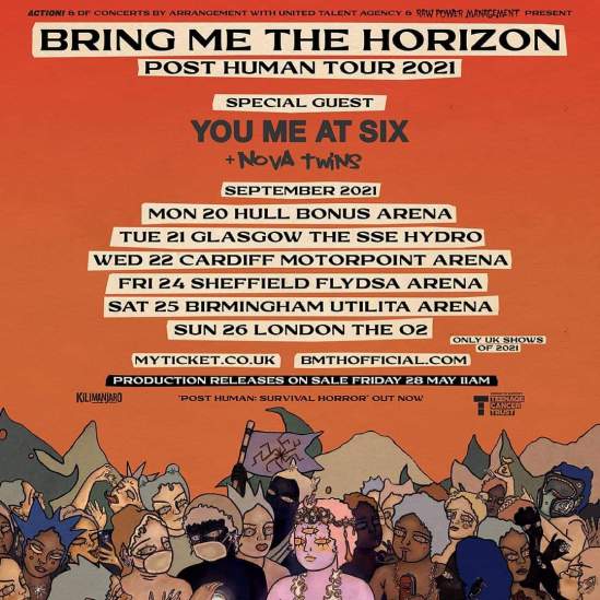 You Me At Six and Nova Twins have been confirmed as the opening acts on Bring Me The Horizon’s September UK tour. Here’s the dates for that run: