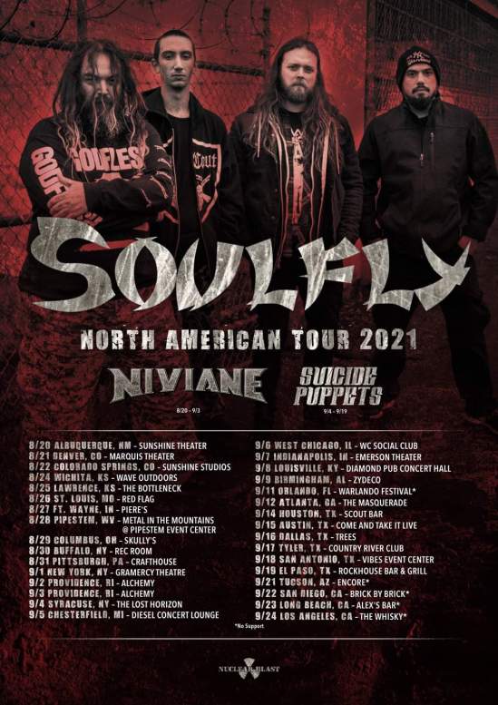 Soulfly have announced a summer U.S. tour. Niviane and Suicide Puppets will open on select dates. Soulfly frontman Max Cavalera commented: