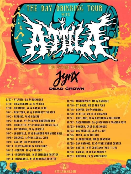 Attila have announced a fall U.S. tour with Jynx and Dead Crown. The band will be touring in support of their new album “Closure,” which is set to be released on July 23.