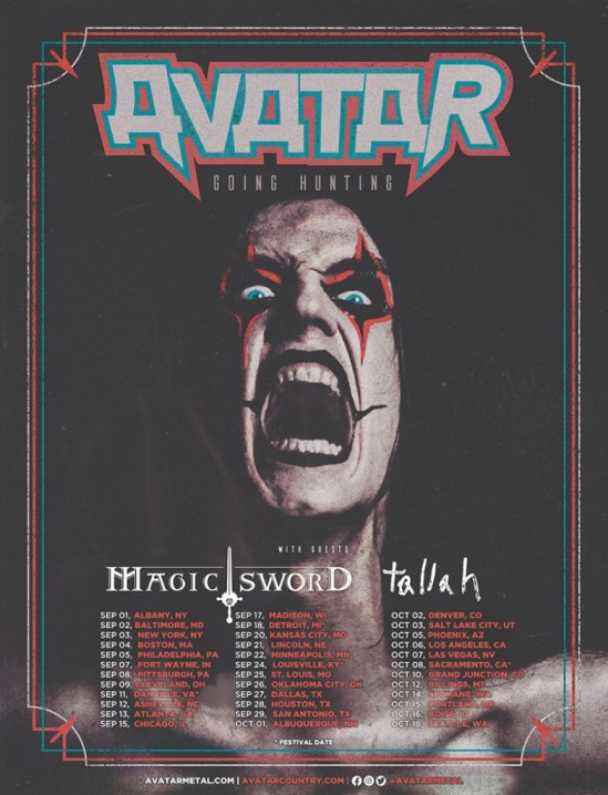 Avatar have announced a headlining U.S. tour. Magic Sword and Tallah will open.