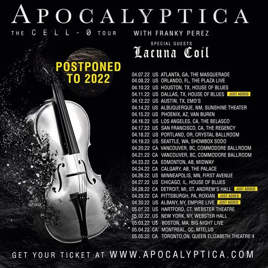 Apocalyptica and Lacuna Coil have postponed their North American tour once again. The trek is now set for 2022.