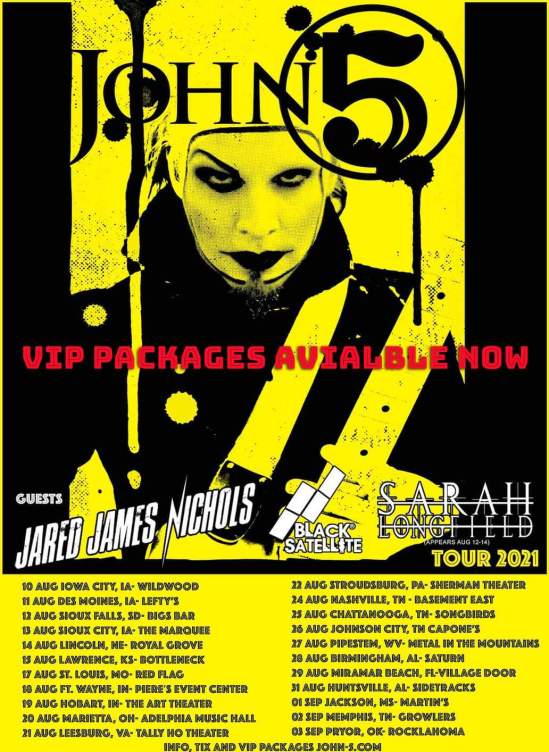 John 5 (Rob Zombie, ex-Marilyn Manson) has announced a U.S. tour with Jared James Nichols and Black Satellite. Sarah Longfield will also perform on select dates.