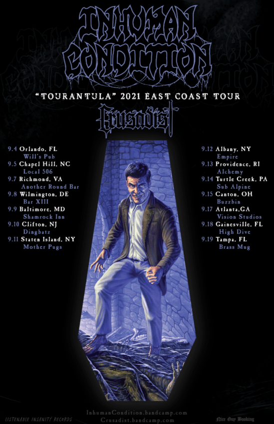 Inhuman Condition, the band featuring Terry Butler (Obituary), Jeramie Kling (The Absence), and Taylor Nordberg (The Absence), have announced an East Coast tour with Crusadist. Here’s the dates: