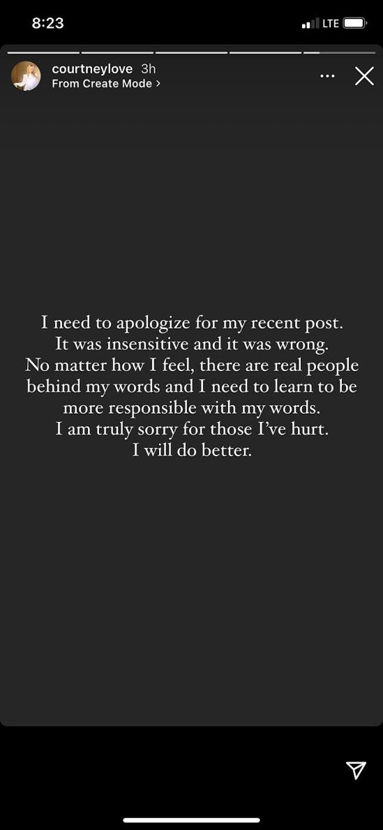 “I need to apologize for my recent post. It was insensitive and it was wrong. No matter how I feel, there are real people behind my words and I need to learn to be more responsible with my words. I am truly sorry for those I’ve hurt. I will do better.”