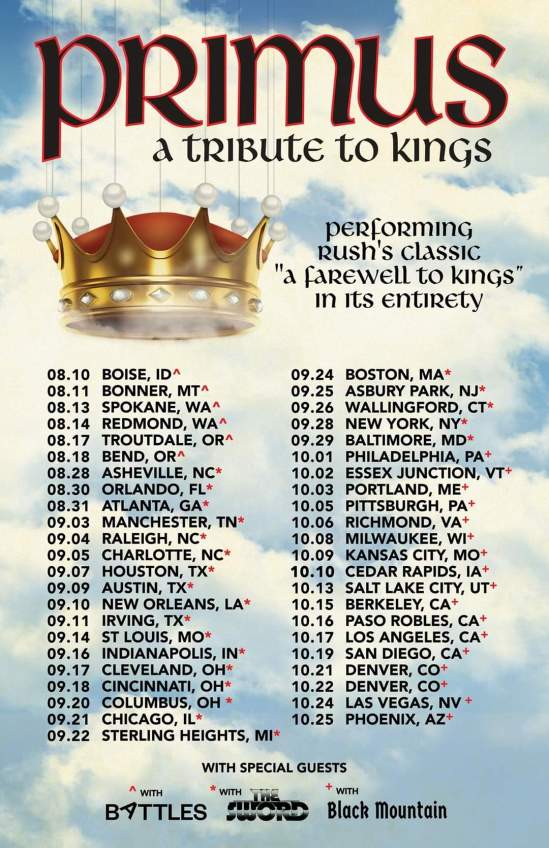 Wolfmother have been forced to drop off of Primus’ “A Tribute To Kings” tour due to visa issues. The trek, which will find Primus performing Rush’s “A Farewell To Kings” in full, will now feature The Sword, Battles and Black Mountain on select dates.