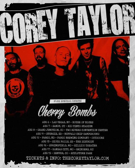 Corey Taylor (Slipknot, Stone Sour) has announced an August tour with the Cherry Bombs. Here’s the dates: