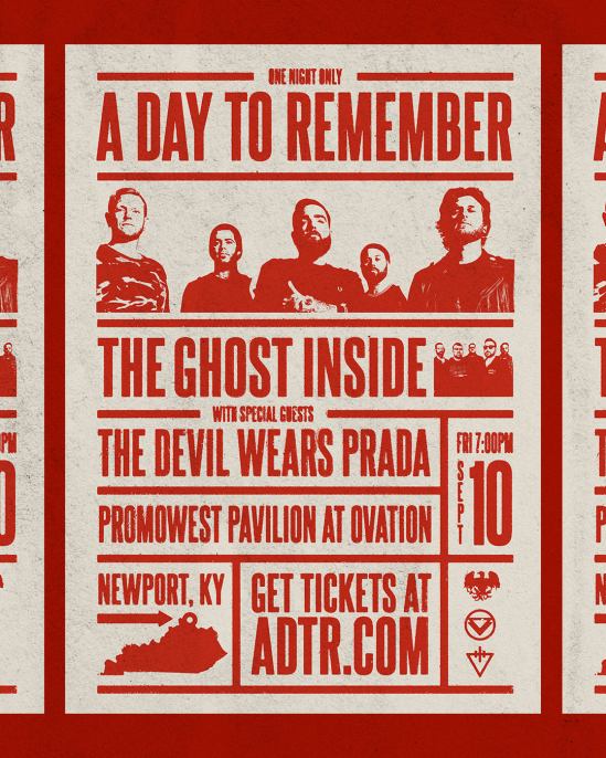 A Day To Remember, The Ghost Inside, and The Devil Wears Prada will be performing at the Promowest Pavilion at Ovation in Newport, KY on September 10. Pre-sale tickets can be accessed HERE with the code ADTR21.