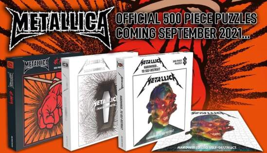 Zee Productions will be releasing new 500-piece jigsaw puzzles based on the artwork for Metallica’s “St. Anger,” “Death Magnetic,” and “Hardwired…To Self-Destruct” on September 17. Pre-orders can be found HERE.
