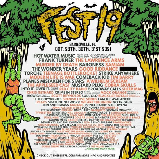 Baroness, Scott Reynolds, Soul Glo, Lemmiwinks, Gordon Withers, Airstream Futures, and more have been added to “Fest 19.” This news comes after several other artists like Gorilla Biscuits, Worriers, etc. dropped off the festival. The event is set to take place on October 29-31 in Gainesville, FL and the updated lineup can be found in the below poster: