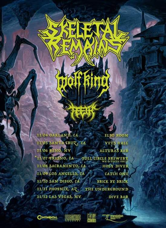 Skeletal Remains have announced a West Coast tour with Wolf King and Teeth. Here’s the dates: