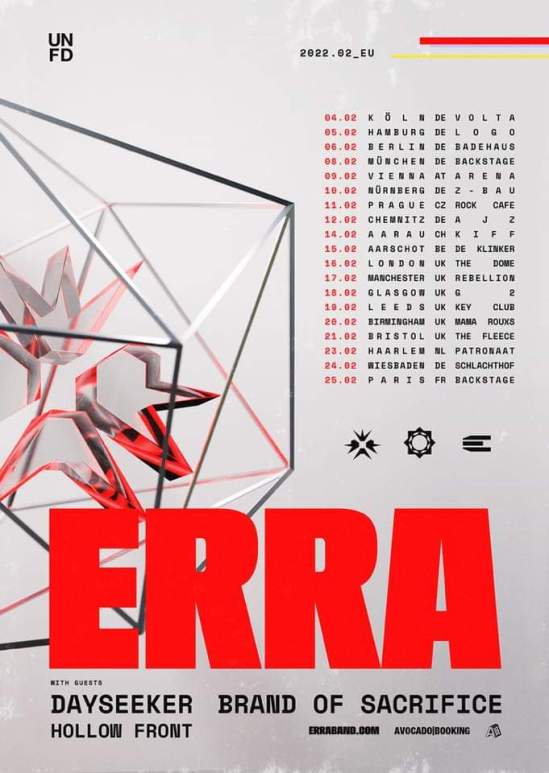 ERRA have announced a headlining European/UK tour. Dayseeker, Brand Of Sacrifice, and Hollow Front will open.
