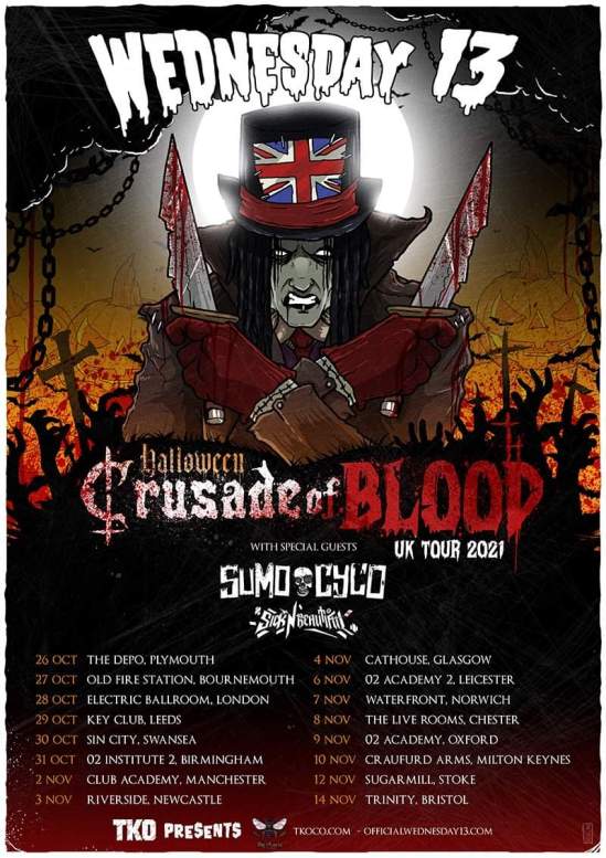 Wednesday 13 has postponed his UK tour with Sumo Cyco and Sick N’ Beautiful. The frontman commented:
