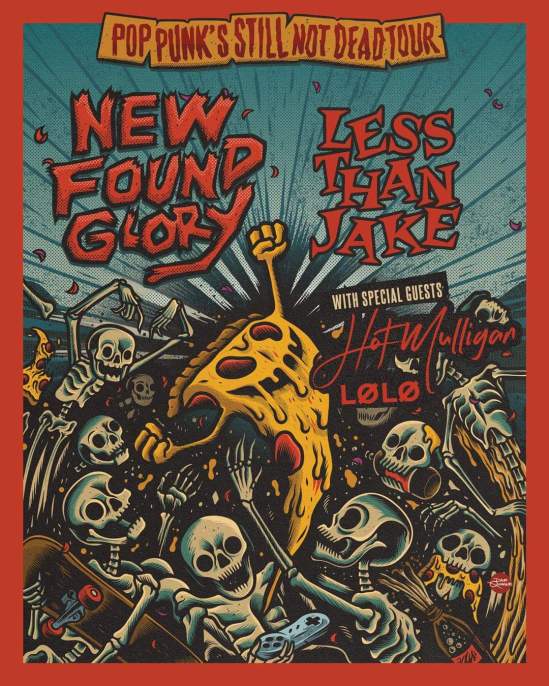 “Pop Punk’s Still Not Dead Tour has some news! The tour will now feature New Found Glory, Less Than Jake, Hot Mulligan, and Lolo! Due to unforeseen circumstances, Simple Plan are no longer part of the lineup. Other than Warped Tour, New Found Glory and Less Than Jake have not done a proper tour together since the infamous Honda Civic Tour back in 2003 so we are very excited that they were able to step in! Hot Mulligan is an awesome new band that most of you have probably heard of and we’re happy to still have Lolo on the tour. Also, many cities, venues and promoters are requiring proof of a negative COVID-19 test result or full vaccination, as well as mask mandates in some areas, to attend shows. We encourage you to check your local venue’s websites for any mandates that they have put in place for everyone’s safety. Our tour party will be following all local protocols and abiding by these mandates to insure our safety as well. It’s been so long since we’ve all been able to be in a room together and we’ve worked really hard to bring you an amazing show so let’s do all we can to make it as safe and enjoyable for everyone! Get ready for an awesome night!! We are ready to shred!!!”