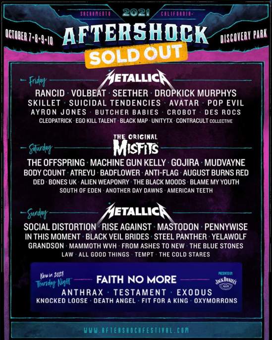 October 7: Faith No More, Anthrax, Testament, Exodus, Knocked Loose, Death Angel, Fit For A King, and Oxymorrons.