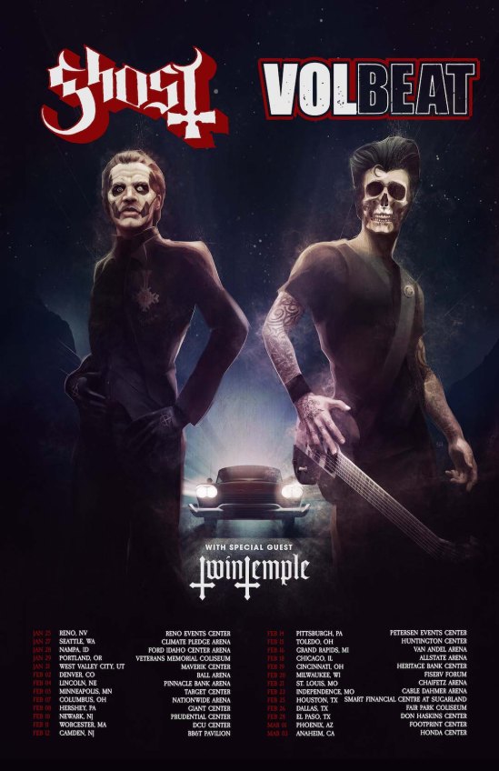Ghost and Volbeat have announced a co-headlining U.S. tour. Twin Temple will open.