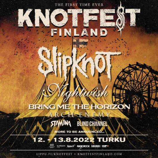 Slipknot have revealed the details for the first-ever Knotfest Finland. The event will be held in Turku on August 12-13, 2022 and it will feature: Slipknot, Nightwish, Bring Me The Horizon, Arch Enemy, Stam1na, and Blind Channel. The latest Knotfest came about after Slipknot were forced to postpone their August 2021 show in Turku due to the coronavirus pandemic. Tickets purchased for that concert will be valid for the August 13 date of the festival. They can also be upgraded to a two-day pass without any extra service fees until November 21. Refunds are also available until that date as well.