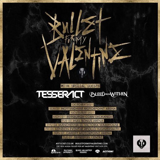 TesseracT and Bleed From Within have been added to Bullet For My Valentine’s fall UK tour. You can find the dates for that run below. Bullet For My Valentine will be touring in support of their new self-titled album (out November 5).