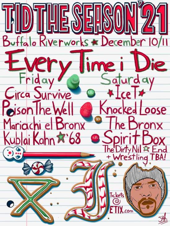 Every Time I Die have officially revealed the lineups for their “‘Tid The Season” holiday concerts. The shows will take place at Buffalo Riverworks in Buffalo, NY on December 10-11 and they will feature the following: