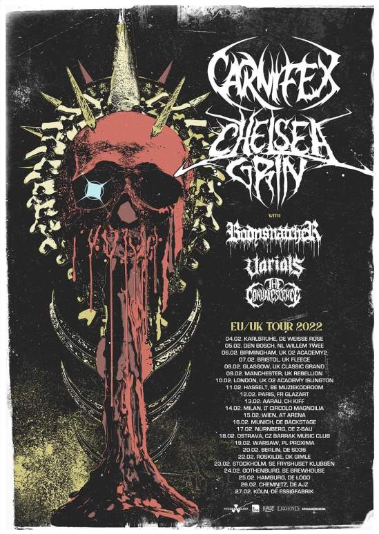 Lorna Shore have dropped off their European/UK tour with Carnifex, Chelsea Grin, Varials, and The Convalescence. Bodysnatcher will be taking their place.