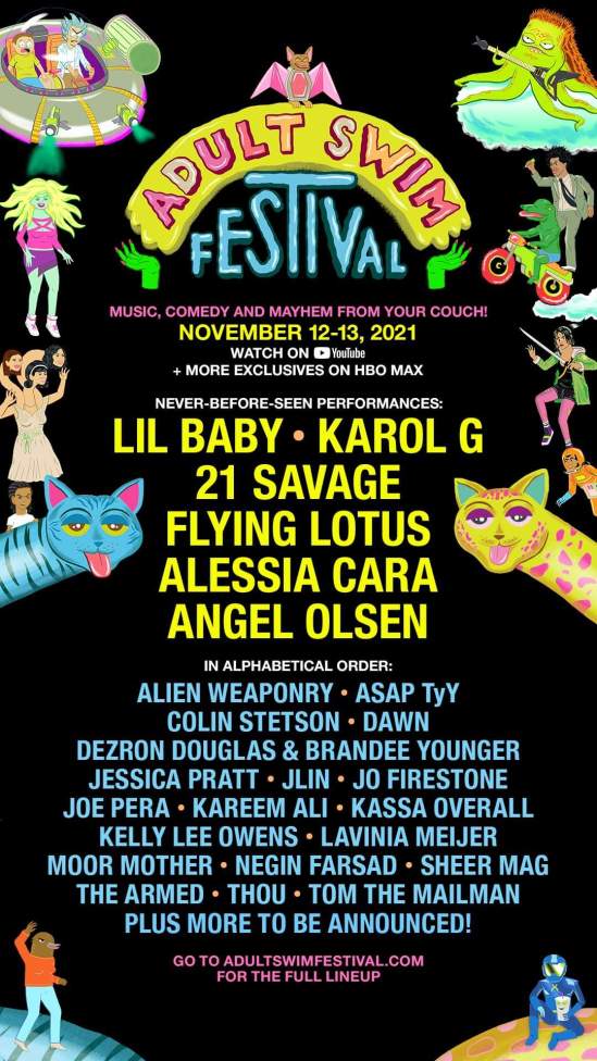 The initial lineup has been revealed for this year’s virtual Adult Swim Festival. The event will take place on November 12-13 and it will feature performances from Alien Weaponry, The Armed, Thou, Lil Baby, Karol G, 21 Savage, Flying Lotus, and more. Most of the content will stream on YouTube, while some exclusives will stream on HBO Max.