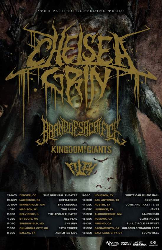 Chelsea Grin have announced a fall headlining tour. Brand Of Sacrifice, Kingdom Of Giants, and Filth will open.