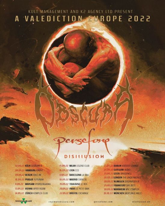 Obscura have postponed their fall European/UK tour with Persefone and Disillusion. The trek is now scheduled to take place in 2022.