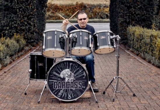 Original Carcass drummer Ken Owen is auctioning off the drum kit he used on “Necroticism – Descanting The Insalubrious,” “Heartwork,” and more in an effort to raise money for a new computer. The set will also come with a framed certificate of authenticity signed by Owen, a framed photo of Owen signing the certificate, a framed photo of Owen behind the kit, and a framed Carcass shirt that was worn by Owen.
