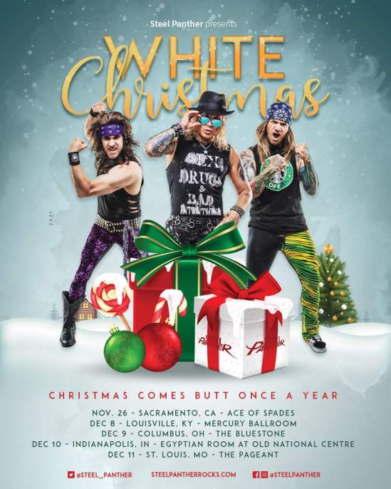 Steel Panther will be celebrating the holidays with some “White Christmas” shows. Here’s the dates: