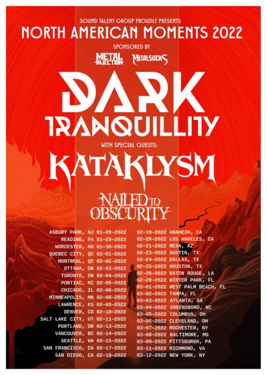 Dark Tranquillity have announced a 2022 North American tour. Kataklysm and Nailed To Obscurity will open.