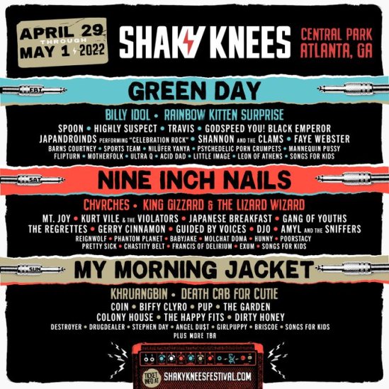 The lineup has been revealed for next year’s Shaky Knees Festival. The event will take place at Central Park in Atlanta, GA on April 29 to May 1 and it will feature: Green Day, Nine Inch Nails, My Morning Jacket, Billy Idol, Highly Suspect, Godspeed You! Black Emperor, King Gizzard And The Lizard Wizard, Biffy Clyro, Dirty Honey, Angel Du$t, and more.