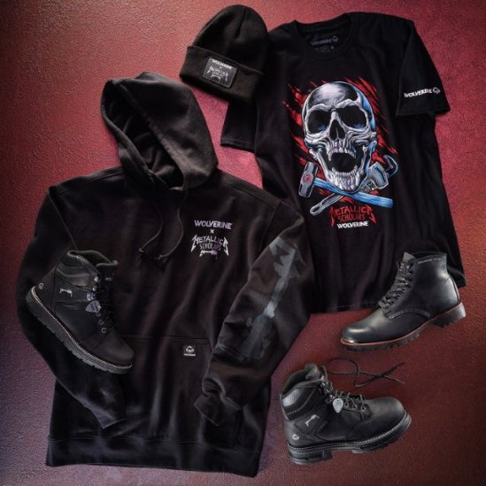 Metallica have announced an encore collaboration with Wolverine. The new collection includes three new pairs of boots, a hoody, a t-shirt, and a beanie. Those items will be available on Giving Tuesday (November 30) and they can be pre-ordered HERE. 50% of all sales will benefit the Metallica Scholars Initiative. James Hetfield commented:
