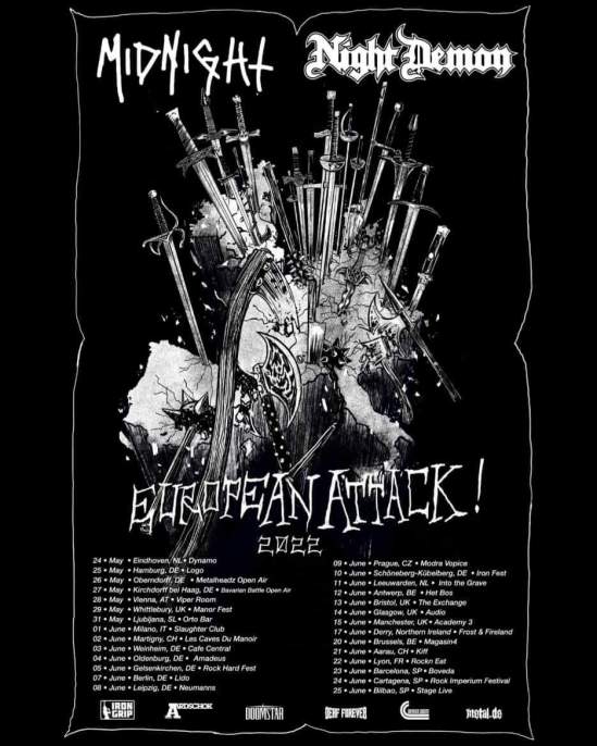 Midnight and Night Demon have announced a European/UK tour. The trek will take place in May/June 2022.