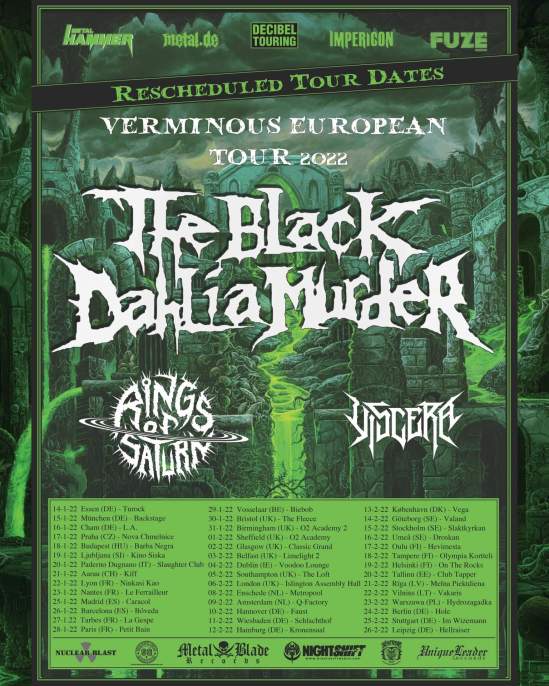 The Black Dahlia Murder have officially cancelled their European/UK tour with Rings Of Saturn and Viscera. The band issued the following statement:
