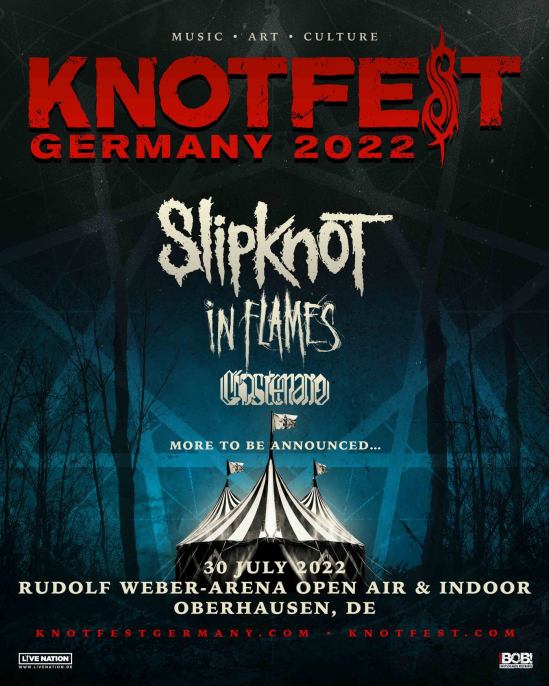 Slipknot will be bringing “Knotfest” to Germany next year. The event will take place at Rudolf Weber-Arena Open Air & Indoor in Oberhausen, Germany on July 30 and it will feature: Slipknot, In Flames, and Ghostemane.