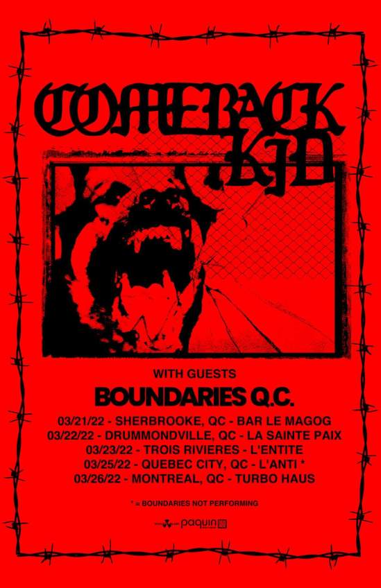 Comeback Kid have announced some March Canadian shows with Boundaries Q.C. Here’s the dates: