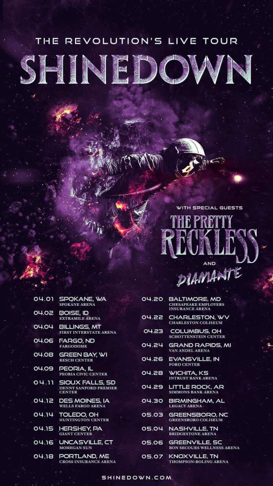 Shinedown have announced a headlining U.S. tour. The Pretty Reckless and Diamante will open.