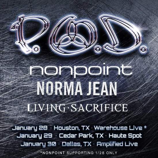 Norma Jean and Living Sacrifice have been added to P.O.D.’s upcoming Texas shows. Here’s the dates: