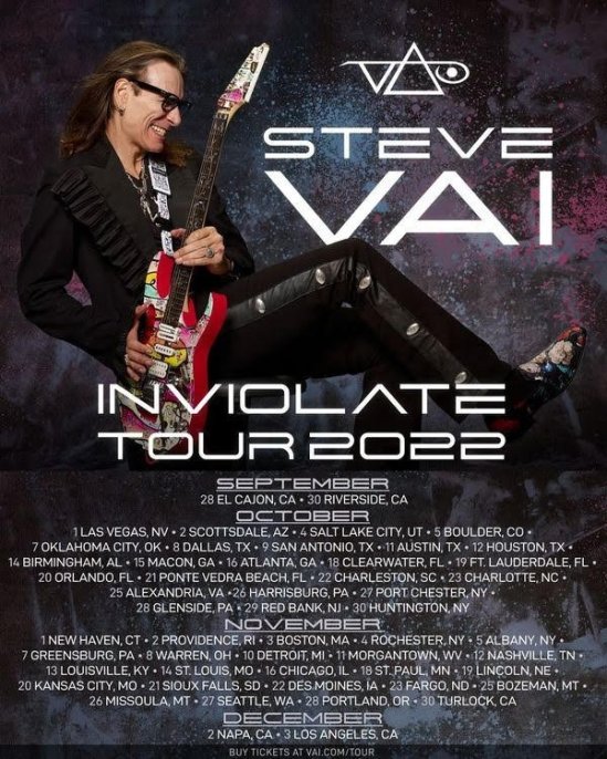 Approximately one year ago, Vai underwent shoulder surgery to repair an injury. That procedure was successful, enabling him to record the upcoming studio album release of Inviolate (Favored Nations / Mascot Label Group). In preparing for the tour, it became clear that a new injury emerged that requires another surgery prohibiting the tour to be staged as announced.”