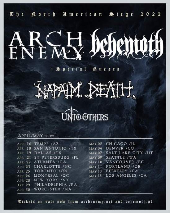 “I honestly couldn’t be more excited about having Arch Enemy join forces with Behemoth, Napalm Death and Unto Others for a run of dates through North America in 2022! A killer package of quality mayhem right there – can’t fckn wait!”