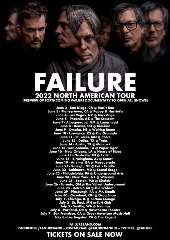 Failure have announced a headlining North American tour. You can find the dates for that run below. Notably, the band also revealed that each show will open with a preview of their new documentary.