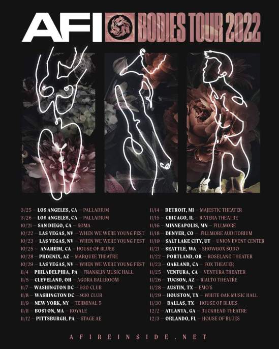 AFI have postponed their upcoming U.S. tour. The trek is now scheduled for this fall. Notably, the band’s March shows in Los Angeles, CA will continue as planned.