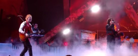 As previously reported, Ed Sheeran was joined onstage by Bring Me The Horizon during the 2022 “BRIT Awards” for a performance of his song “Bad Habits.” Now, the pop star has revealed that he has recorded a studio version of the track with the band and that he is also planning to write a new song with them.