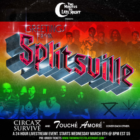 “Two Minutes To Late Night” have revealed the details for their next “Splitsville” livestream event. The virtual set will take place on March 9 and it will find Circa Survive and Touché Amoré covering each other’s songs. Tickets can be found HERE.