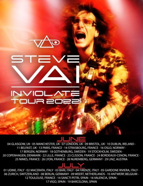 Steve Vai has announced a summer European/UK tour. He will be touring in support of his latest album “Inviolate.”