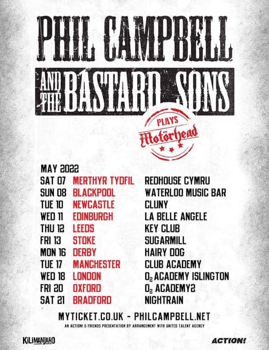 Phil Campbell And The Bastard Sons will be performing a set of Motörhead songs on their upcoming UK tour. Here’s the dates for that run: