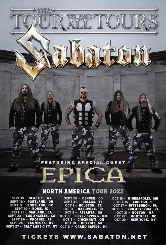 Sabaton have announced a headlining North American tour. Epica will open.