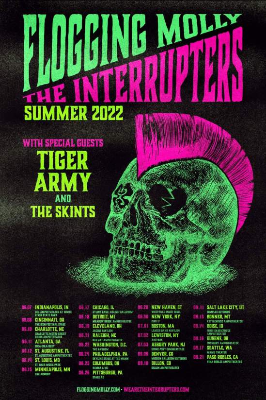 Flogging Molly and The Interrupters have announced a co-headlining U.S. tour. Tiger Army and The Skints will open.