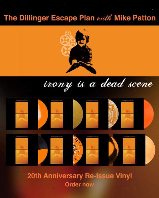 The Dillinger Escape Plan and Mike Patton (Faith No More, Mr. Bungle, etc.) will be releasing a 20th anniversary vinyl edition of their collaborative EP, “Irony Is A Dead Scene,” on May 13. Pre-orders are available HERE.