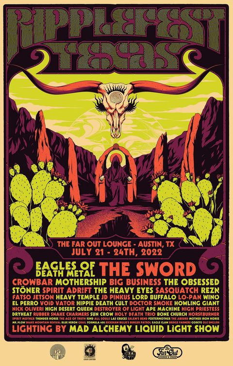 The lineup has been revealed for this year’s Ripplefest Texas. The event will take place at The Far Out Lounge in Austin, TX on July 21-24 and it will feature the following: Eagles Of Death Metal, The Sword, Crowbar, Mothership, Big Business, The Obsessed, Stöner, Spirit Adrift, The Heavy Eyes, Sasquatch, Rezn, Fatso Jetson, Heavy Temple, JD Pinkus, Lord Buffalo, Lo-Pan, Wino, El Perro, Void Vator, Hippie Death Cult, Doctor Smoke, Howling Giant, Nick Oliveri, High Desert Queen, Destroyer Of Life, Ape Machine, High Priestess, Dryheat, Rubber Snake Charmers, Sun Crow, Holy Death Trio, Bone Church, Horseburner, Spirit Mother, Thunder Horse, The Age Of Truth, Kind, All Souls, Las Cruces, Salem’s Bend, Fostermother, The Absurd, Mother Iron Horse, Mr. Plow, Snake Mountain Revival, Blue Heron, Grail, Formula 400, Rickshaw Billie’s Burger Patrol, Eagle Claw, Bridge Farmers, Godeye, and Ole English.